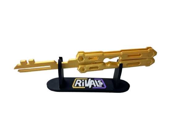 Vystavte své oblíbené předměty jedinečným způsobem! Tento designový stojan inspirovaný světem Roblox Rivals je ideálním řešením pro hráče a sběratele, kteří chtějí své sbírce dodat charakter.