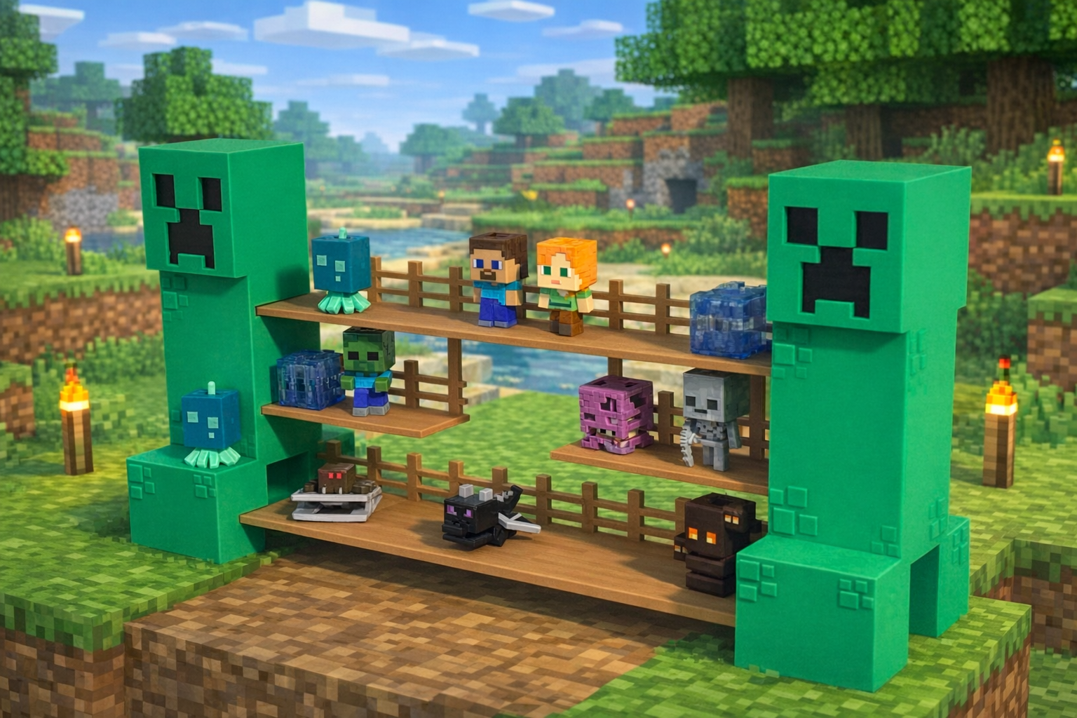 Postarejte se o to, aby vaše figurky nestály náhodně na poličce – vystavte je ve stylu, který opravdu odpovídá světu Minecraftu a ukažte svou sbírku s hrdostí! 🎮✨