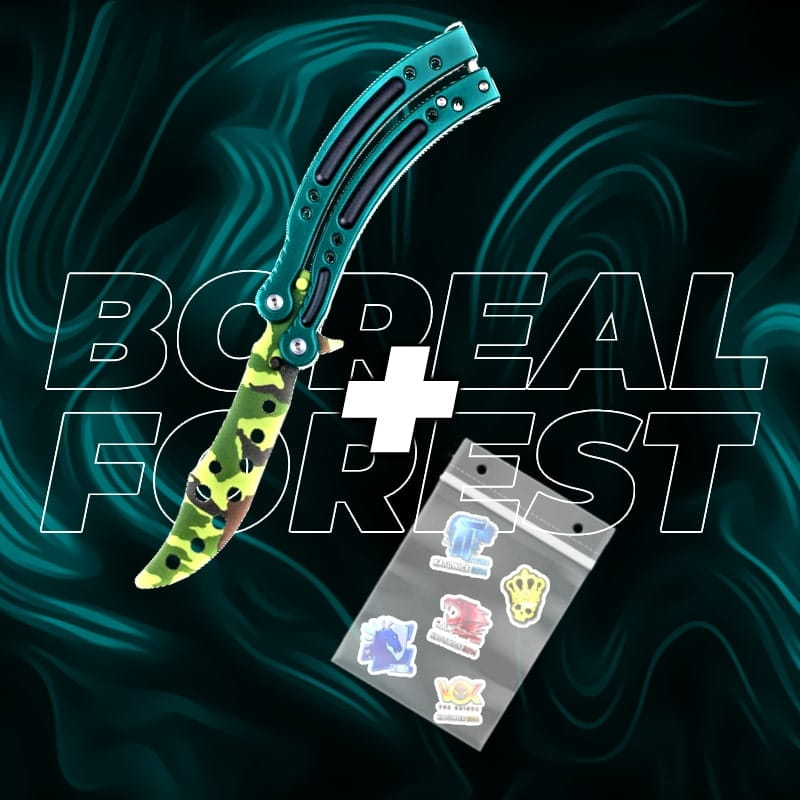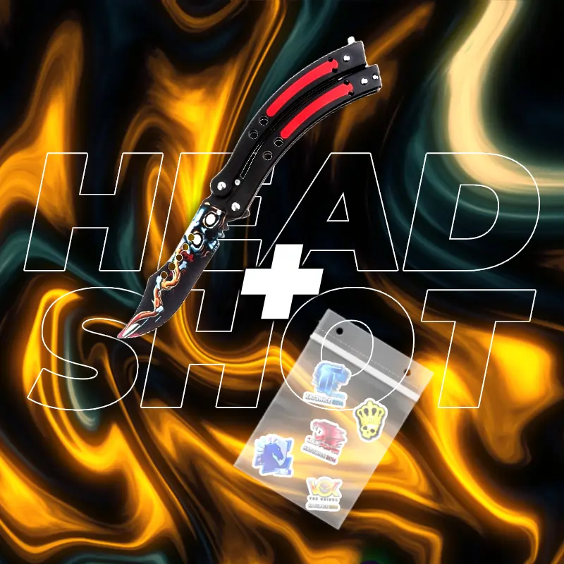 Zestaw zawiera: NÓŻ MOTYLKOWY – efektowny design w intensywnych odcieniach, z metalicznym połyskiem i eleganckim wykończeniem 5 różnych naklejki związanych z CS2 – świetny sposób na ozdobienie swojego laptopa, konsoli czy innych akcesoriów